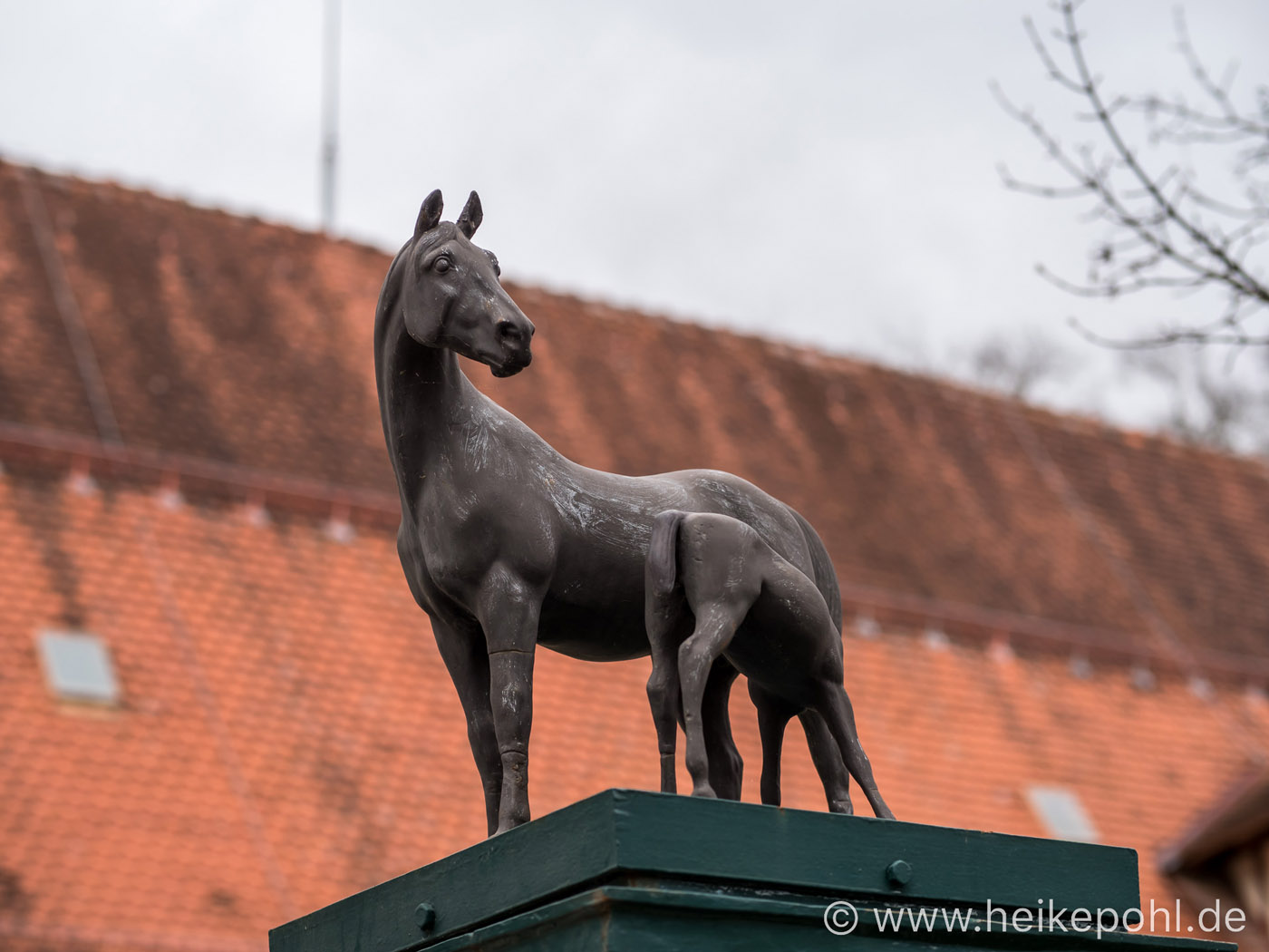 Begonnen haben wir unsere Ausflugswoche dort, wo mein Sehnsuchtsort ist. Oder besser: wo er bislang war. In Marbach bei Münsingen auf der Schwäbischen Alb, bei den Pferden im Haupt- und Landgestüt Marbach. Jedes Mal, wenn ich bei meinen Eltern bin, ist ein Besuch dort oben ein Muss. Unvergessen bleiben die vielen Ausflüge zu den schönen arabischen Pferden, als wir Kinder waren, das weite Gelände, die alten Bäume, die riesigen Weiden und die Stutenherden mit ihren Fohlen. Über so lange Zeit fast unberührt, hat sich das Haupt- und Landgestüt zwischenzeitlich doch sehr verändert. Die Anlage wirkt clean, man spürt – anders als früher – die Ausrichtung am Pferdemarkt bzw. dass es sich um einen Wirtschaftsbetrieb handelt und nicht um ein Refugium für Menschen wie mich, die hier in Erinnerungen schwelgen und das Anachronistische feiern mögen. Etliche Ställe sind für BesucherInnen nicht mehr zugänglich, aus hygienischen und anderen Gründen. Der alte Gestütsgasthof „Gullewitsch“ fehlt und mit ihm ein Besuch im Museum und ein – nach einem langen Ausflug – letzter Gang zu den wunderschönen Schwarzwälder Füchsen im Stall. Vielleicht aber habe auch einfach ich mich verändert und blicke heute anders auf das, was mir vier Jahrzehnte lang Zuflucht aus dem Alltag war? Was auch erklären würde, warum es so lange brauchte, bis ich nach Grafeneck „fand“ und begriffen habe, welche Ungeheuerlichkeit dort und in Rufweite zu „meinen Pferden“ vor 80 Jahren stattgefunden hat.