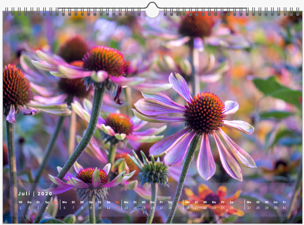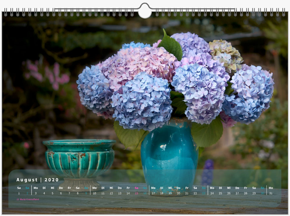 In meinen jährlichen Kalendern zeige ich das Landleben, meinen Garten, Natur und Tiere, Schleswig-Holstein und was mich umgibt von seiner schönsten Seite. Die Motive folgen dem Lauf der Jahreszeiten und sind eine bunte Mischung aus dem Leben im Norden Deutschlands. Mit der Vielfalt möchte ich möglichst viele Menschen mit unterschiedlichsten Interessen erreichen. Und ab und an und in manchen Jahren bringe ich dann auch mal einen speziellen Kalender heraus, wie zum Beispiel den mit Historischen Rosen.